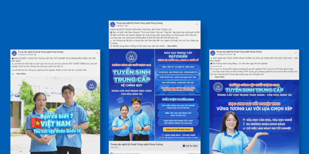 Được sự tin tưởng của thầy cô Ban Đào Tạo – Trường TCN Kỹ Thuật Công Nghệ Hùng Vương, chúng tôi tiếp tục có cơ hội được tổ chức triển khai các chiến dịch quảng cáo tuyển sinh năm 2025.
