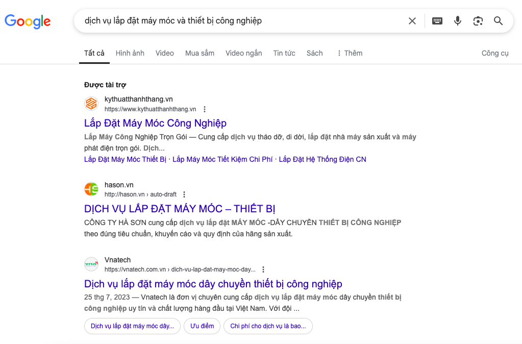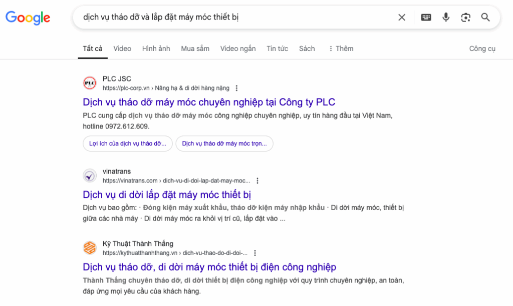 Thông qua quảng cáo Google Tìm Kiếm, giúp Thành Thắng có thể “đón đầu” những khách hàng mới đang có nhu cầu tìm kiếm các dịch vụ về “Tháo dỡ và di dời nhà máy”.