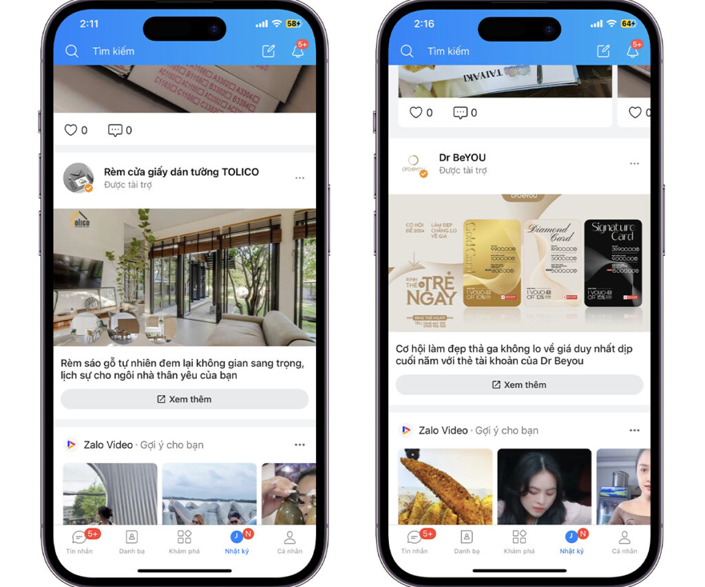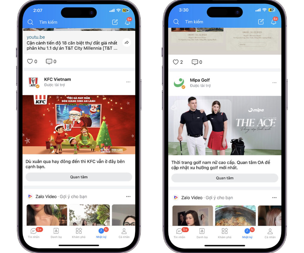 Hỗ trợ tăng cường nhận diện thương hiệu cho doanh nghiệp trên hệ thống sinh thái của Zalo, được hiển thị ở những vị trí có kích thước lớn và nổi bật như PC, Mobile of Báo Mới, Zing MP3, Zalo app.