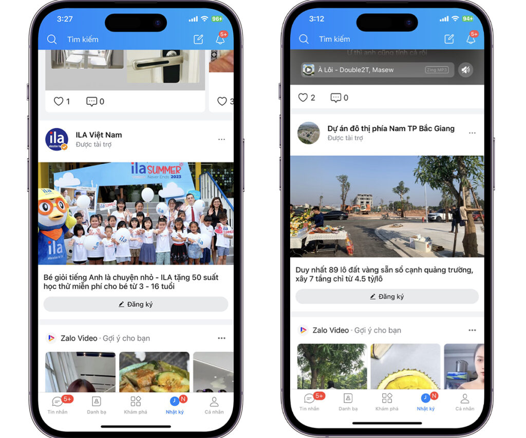 Zalo App: Nhật ký và nội dung bài viết trong Media Bo