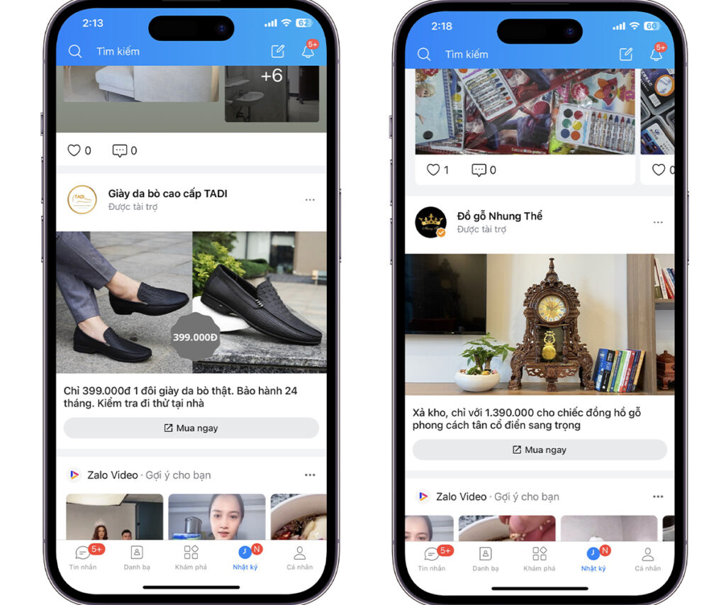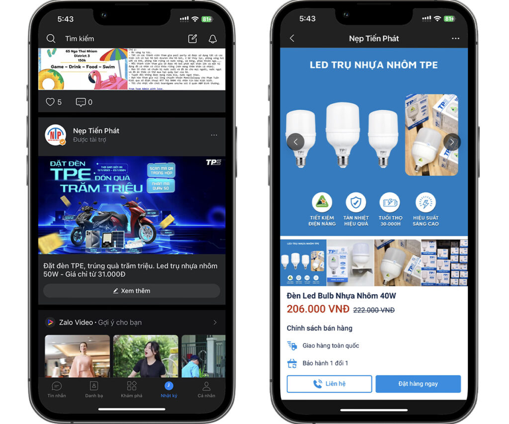 • Khi người dùng nhấn vào quảng cáo, hệ thống sẽ mở hộp thoại nhanh và người dùng có thể tương tác trực tiếp 1:1 với doanh nghiệp.